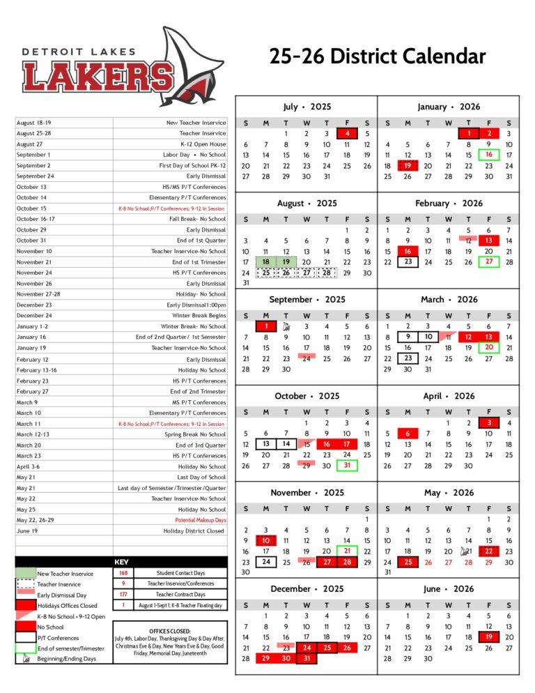 Detroit Lakes Schools Calendar