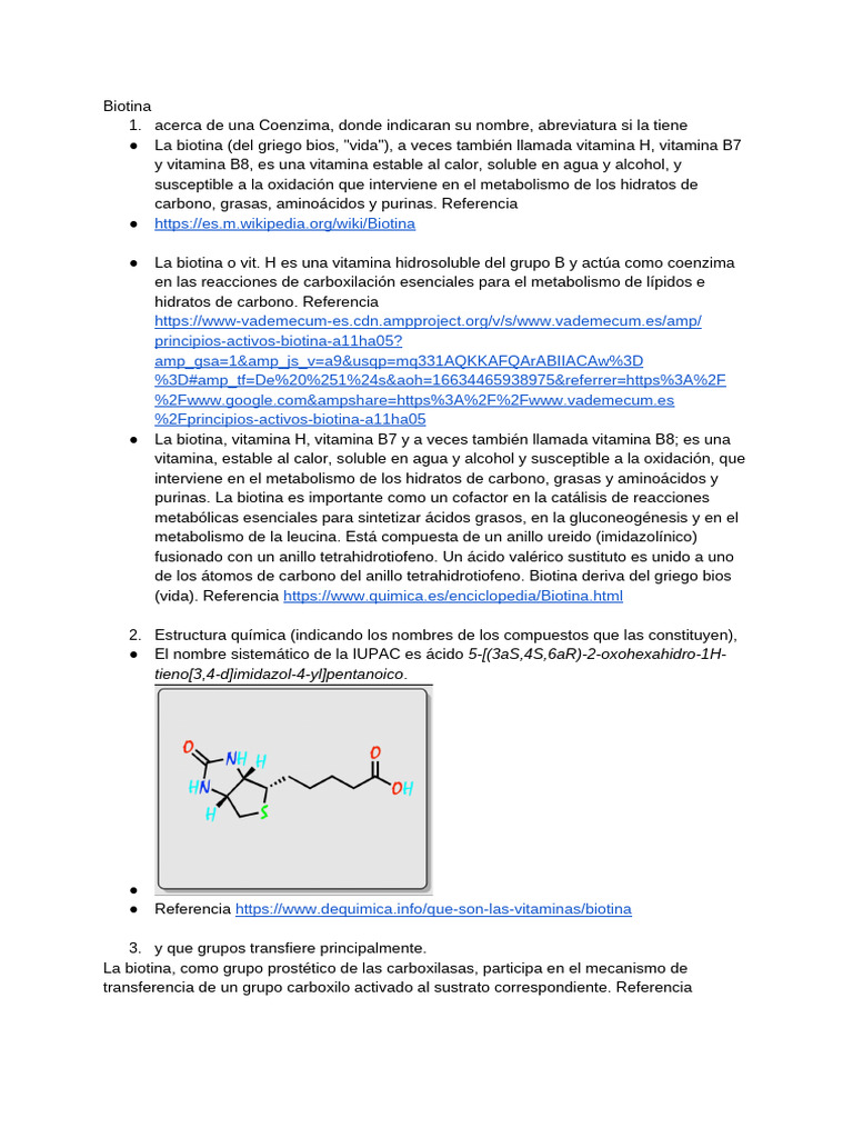 Biotina PDF Metabolismo Biofísica Molecular
