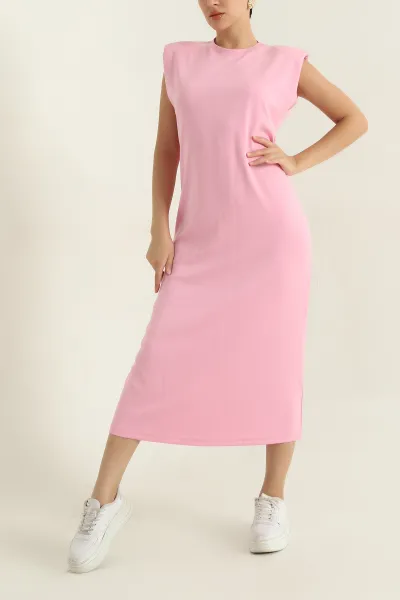 Pembe Vatkalı Kolsuz Modal Kadın Elbise 372402