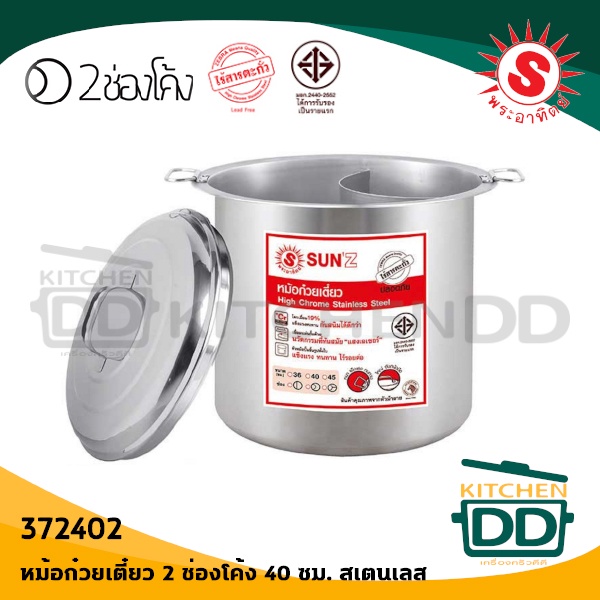 หม้อก๋วยเตี๋ยว 40 ซม 2 ช่องโค้ง ความจุ 48 ลิตร สเตนเลส พระอาทิตย์