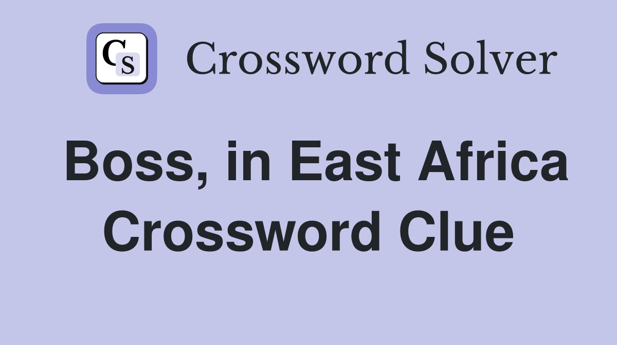 Boss in East Africa Crossword Clue Answers Crossword Solver