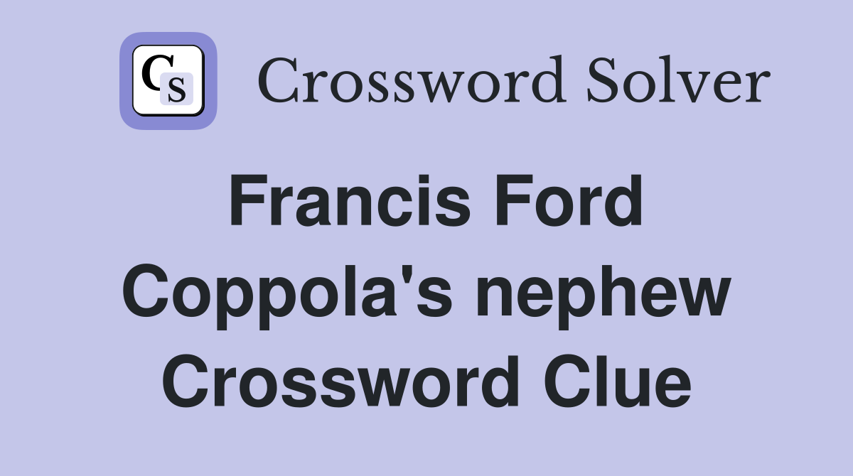 Francis Ford Coppola #39 s nephew Crossword Clue Answers Crossword Solver