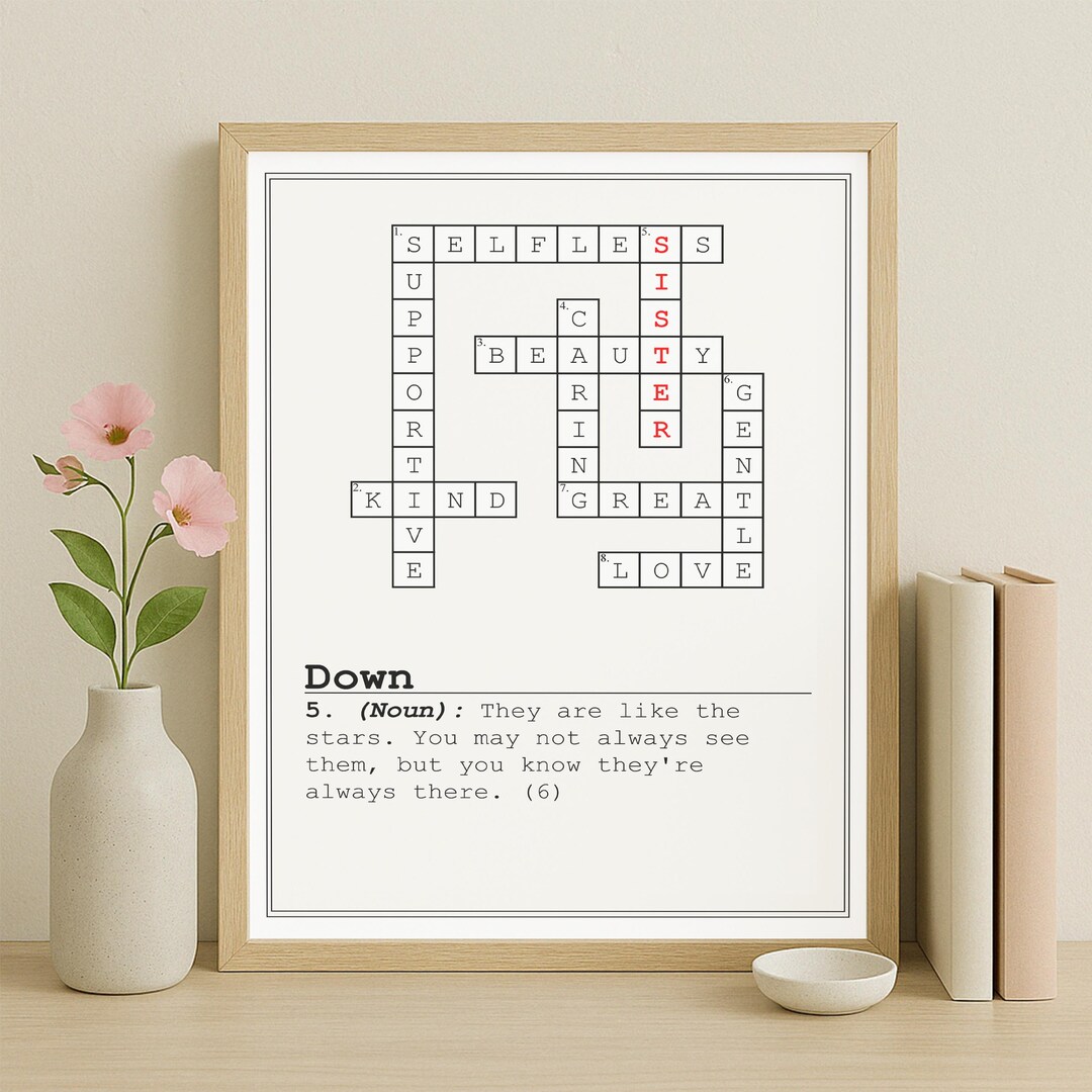 Sister Crossword Print Handmade Word Art Gift Birthday Present for