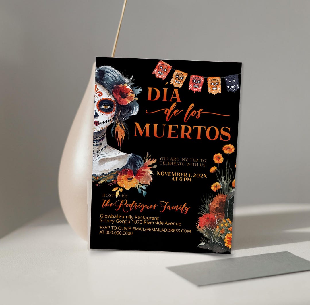 Dia De Los Muertos Invitation Template Day of the Dead Theme Etsy