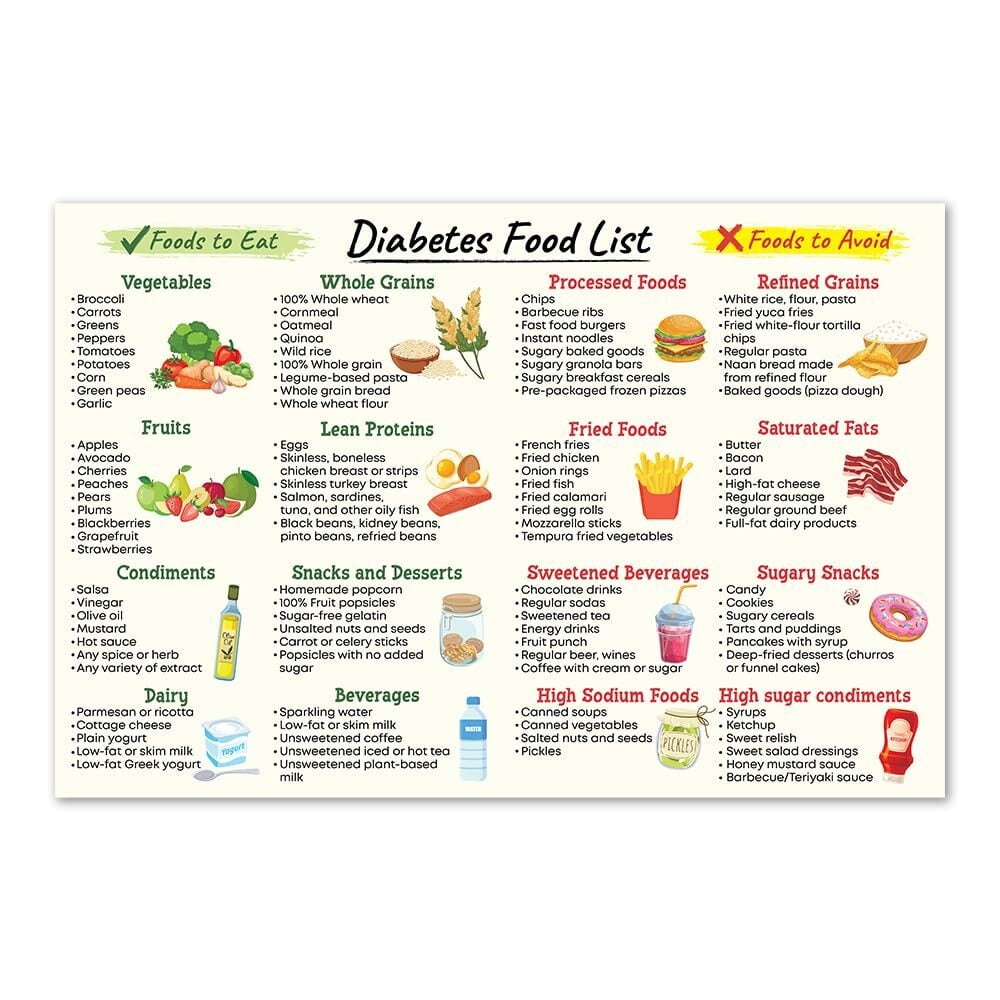 Amazon com: Pre Diabetes Food List Poster Diabetic Diet Plan Canvas