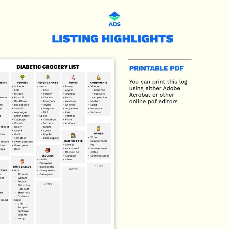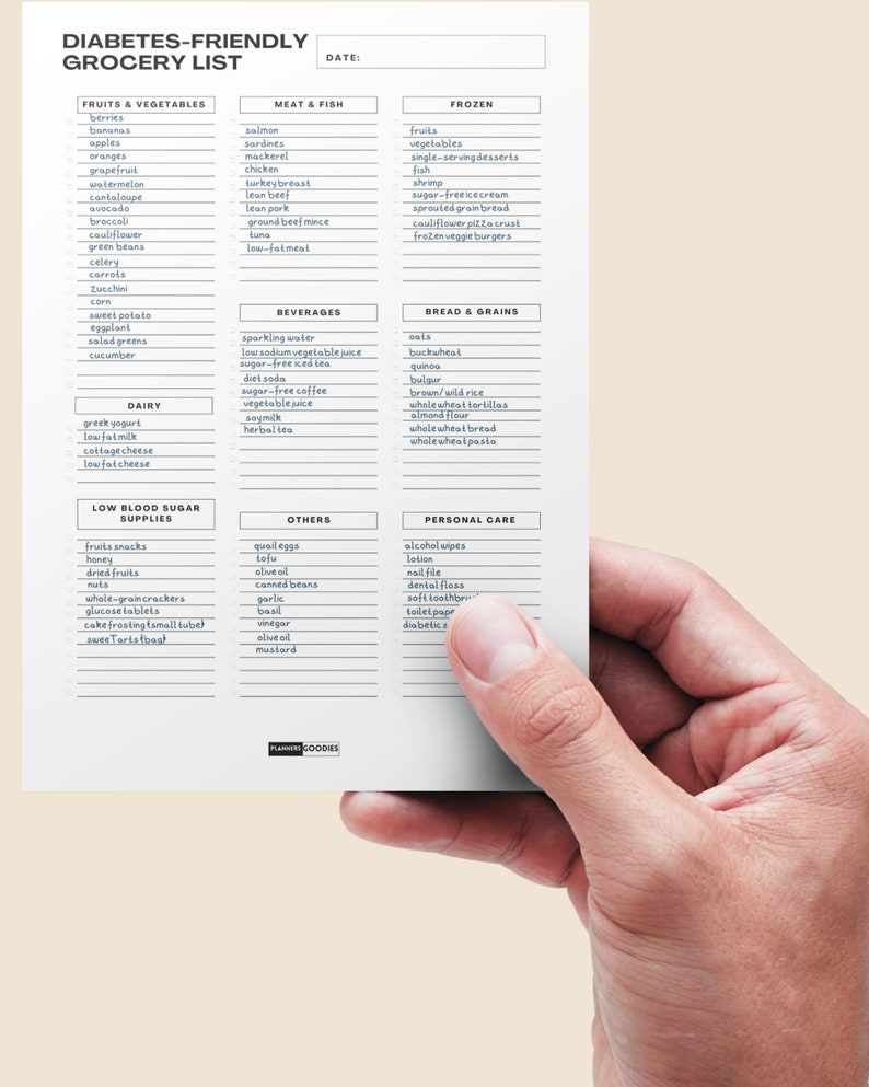 Diabetic Grocery List Printable PDF Goodnotes and Notability Friendly