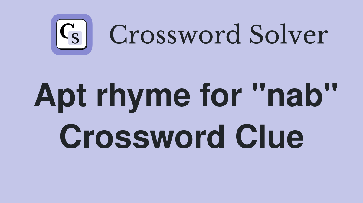 Apt rhyme for quot nab quot Crossword Clue Answers Crossword Solver