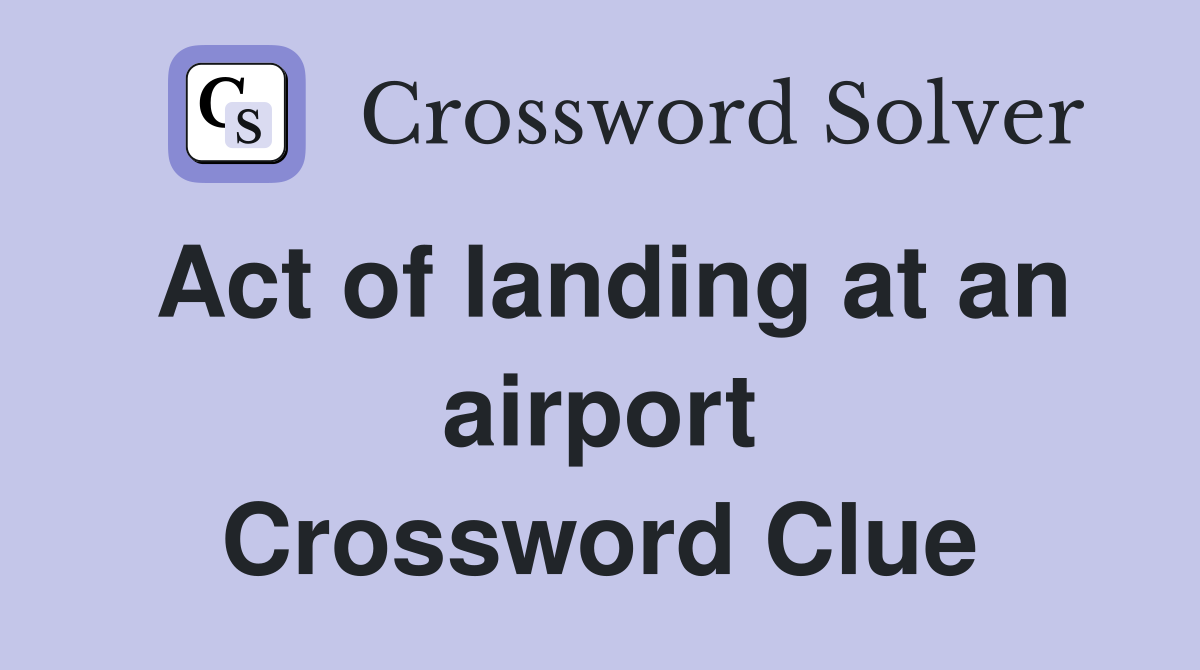 Act of landing at an airport Crossword Clue Answers Crossword Solver
