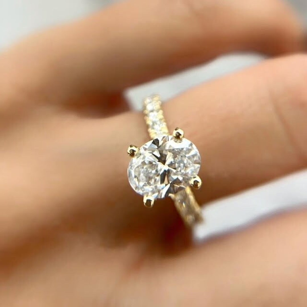 Oval Diamond Engagement Ring 2 Carats Oval Diamond Ring Etsy