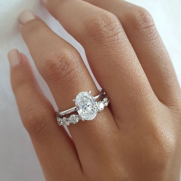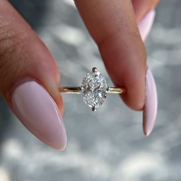 Oval Cut Solitaire Lab Diamond Engagement Ring Wedding Ring Etsy