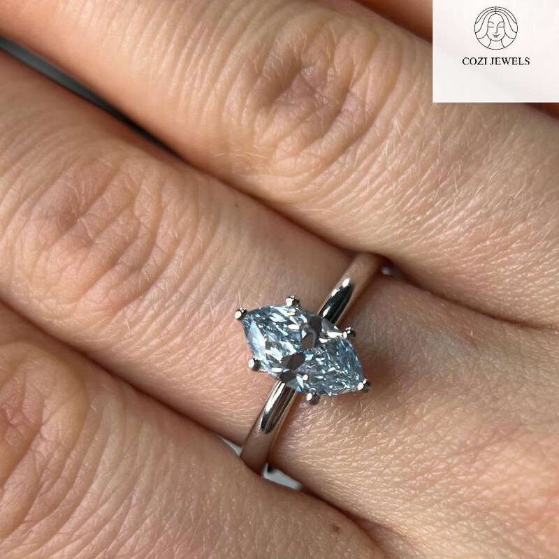 Hexagon Diamond Ring 1 25ct Solitaire Diamond Ring Round Etsy