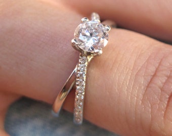 Cushion Cut 1 Carat Moissanite Diamond Ring Set 925 Sterling Etsy