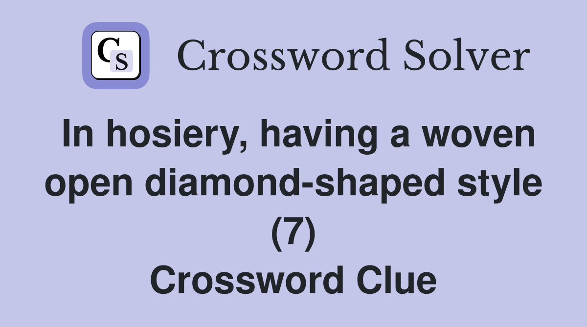 In hosiery having a woven open diamond shaped style (7) Crossword