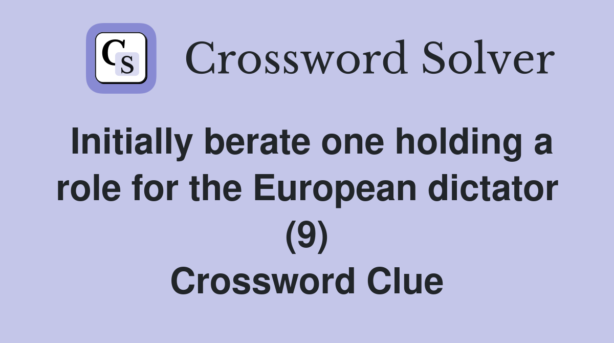 A dictator #39 s cruel appearance Crossword Clue Answers Crossword Solver