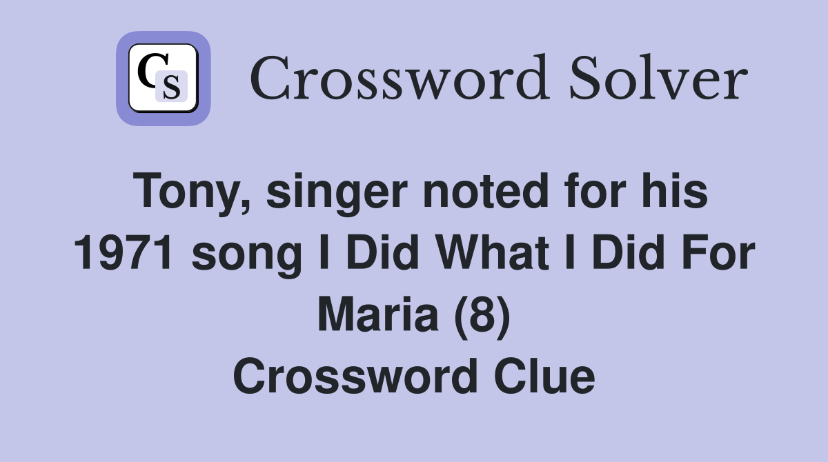 Tony singer noted for his 1971 song I Did What I Did For Maria (8