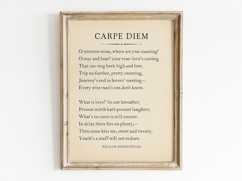 Carpe Diem Poem by William Shakespeare Printable Digital Download