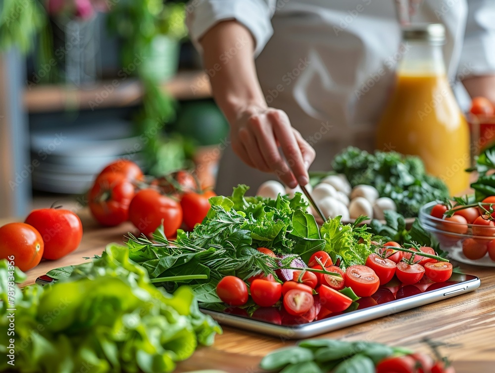 Nutritionist consulting over telehealth platform screen sharing green