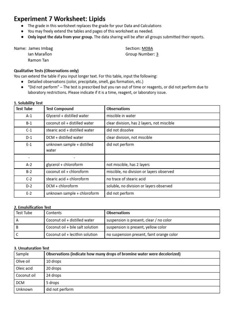 Lipid Worksheet PDF Lipid Fat