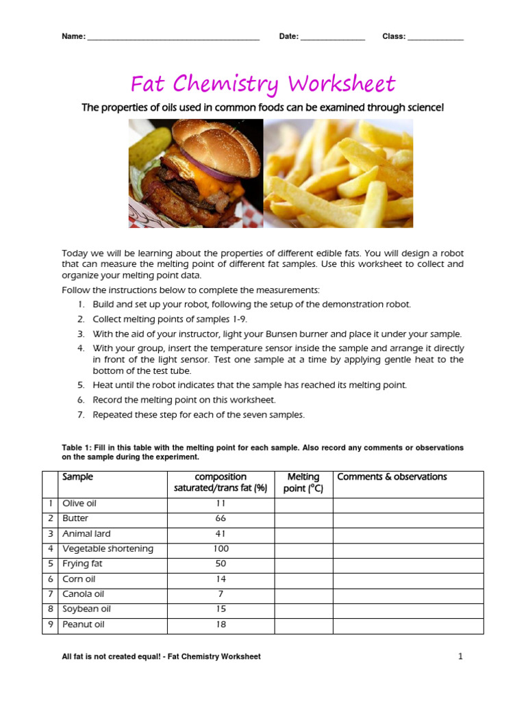 Fats Worksheet Download Free PDF Fat Cooking Oil