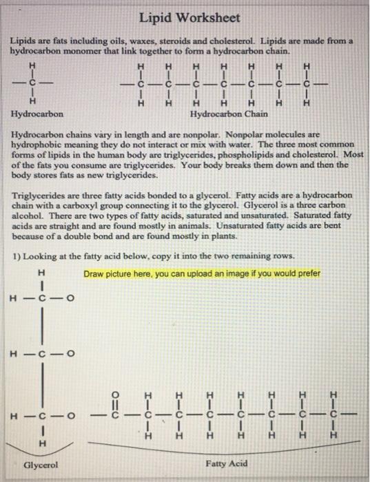 Solved Lipid Worksheet Lipids are fats including oils Chegg com