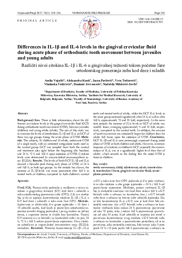 (PDF) Differences in IL 1β and IL 6 levels in the gingival crevicular