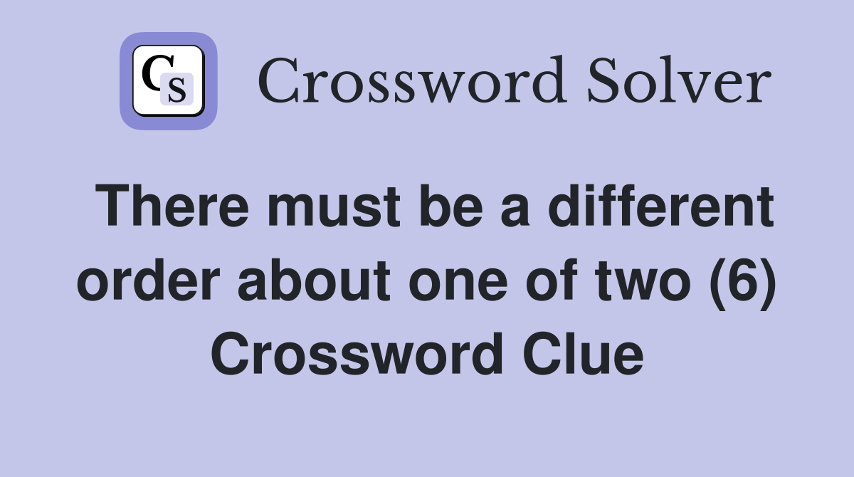 There must be a different order about one of two (6) Crossword Clue