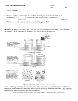 Osmosis and Diffusion Beaker pdf Name: Pd: Date: Diffusion and