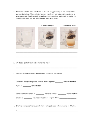 Diffusion and Osmosis Slides and Worksheet (GCSE Biology AQA