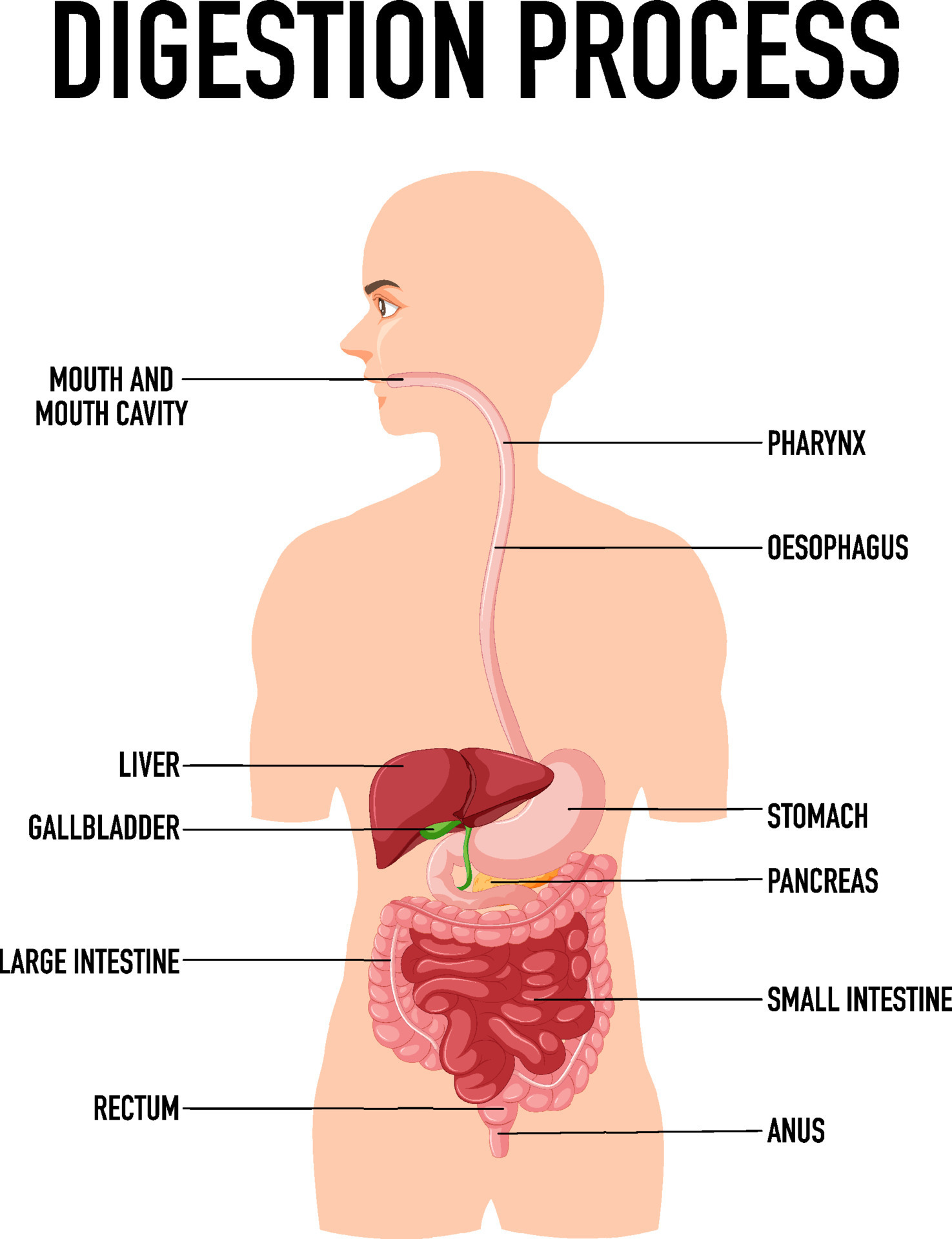 Diagram showing digestion process in human 8190779 Vector Art at Vecteezy