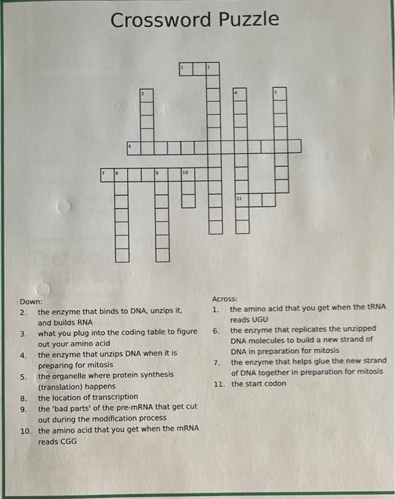 Solved Crossword Puzzle 10 Down: 2 the enzyme that binds to Chegg com