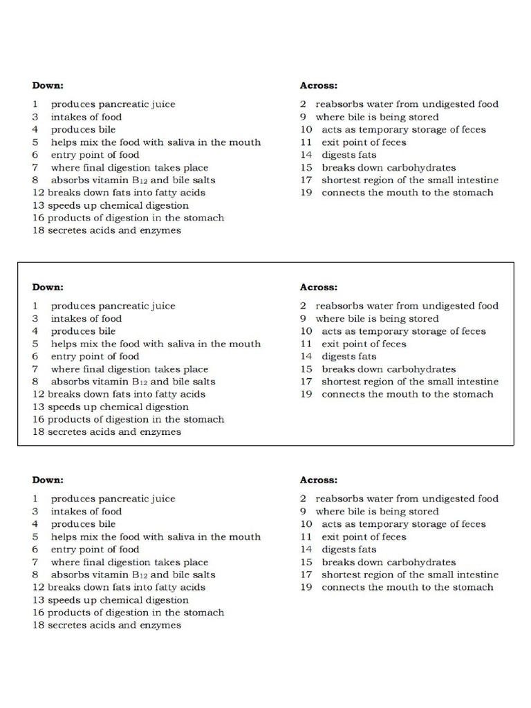 Digestive System Crossword Puzzle Printable