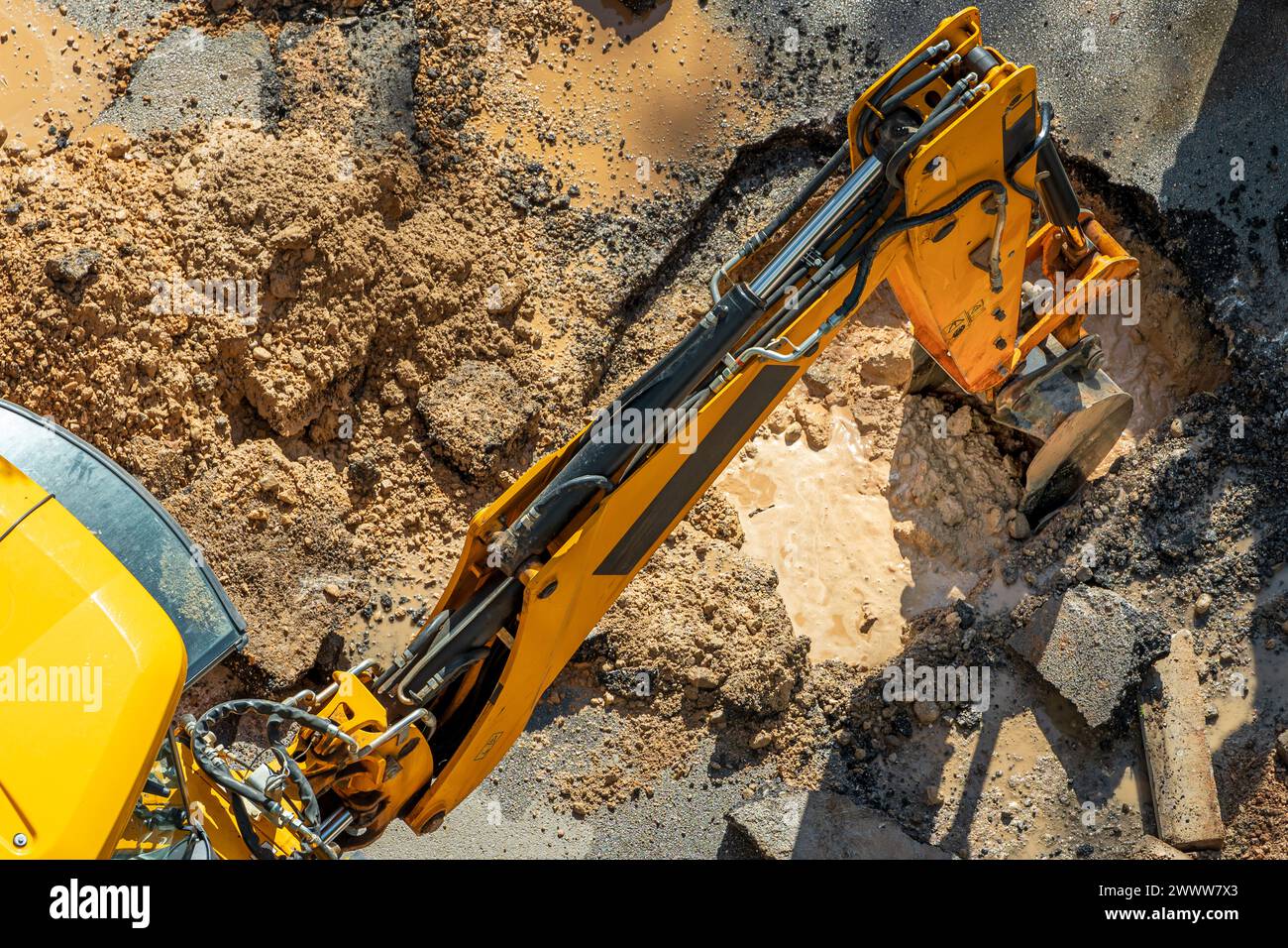 Premium Photo Heavy modern yellow digger excavator isolated on a