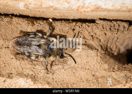 digger cuckoo bee (Melecta albifrons) sits on the ground Germany