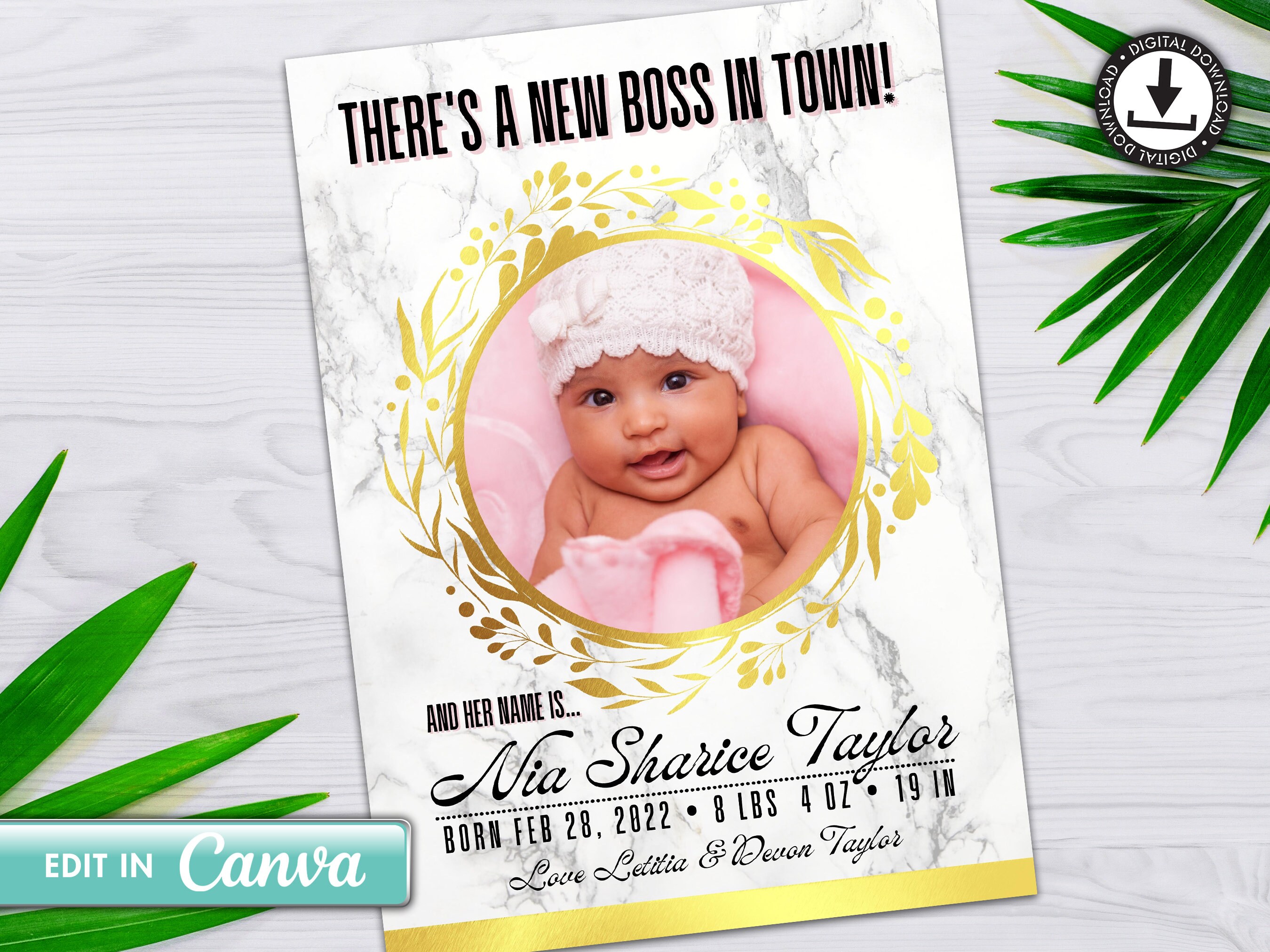 Digital Birth Announcement Template