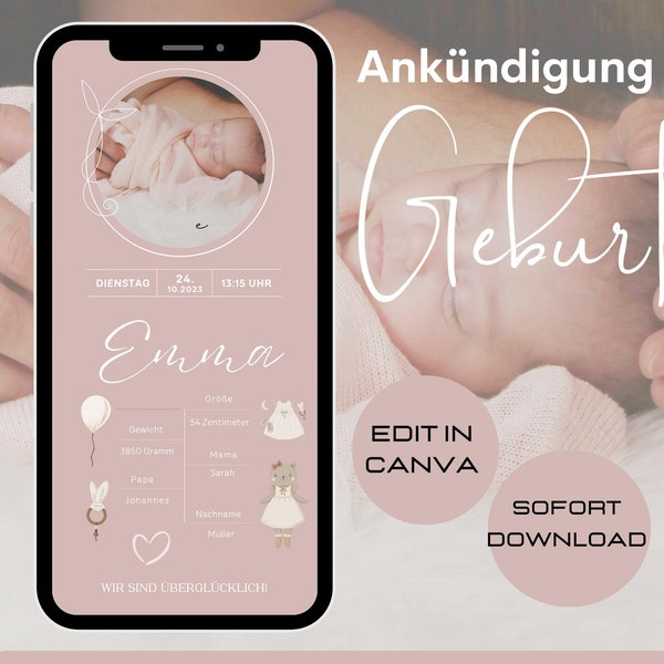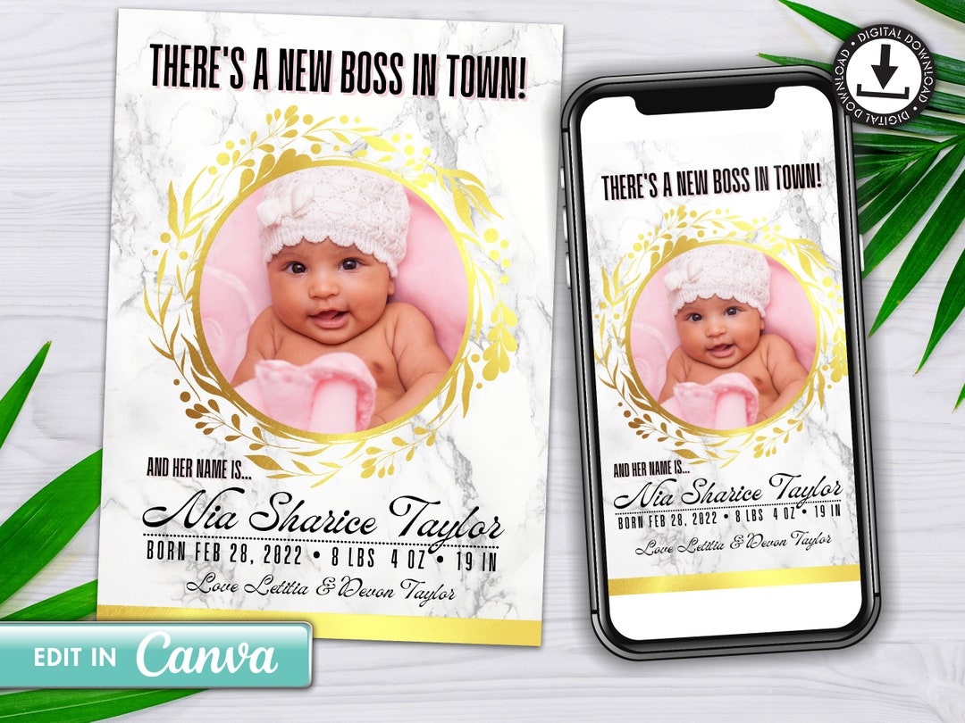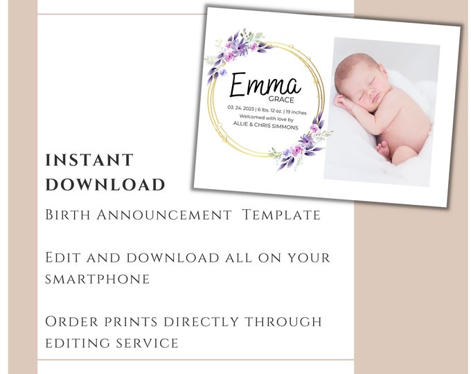 Digital Birth Announcement Canva template edit how you want Etsy