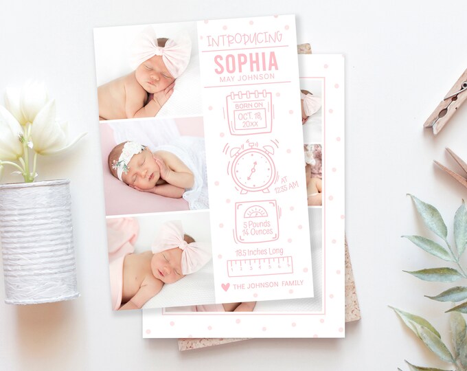Digital Baby Girl Birth Announcement Card Newborn Announcement