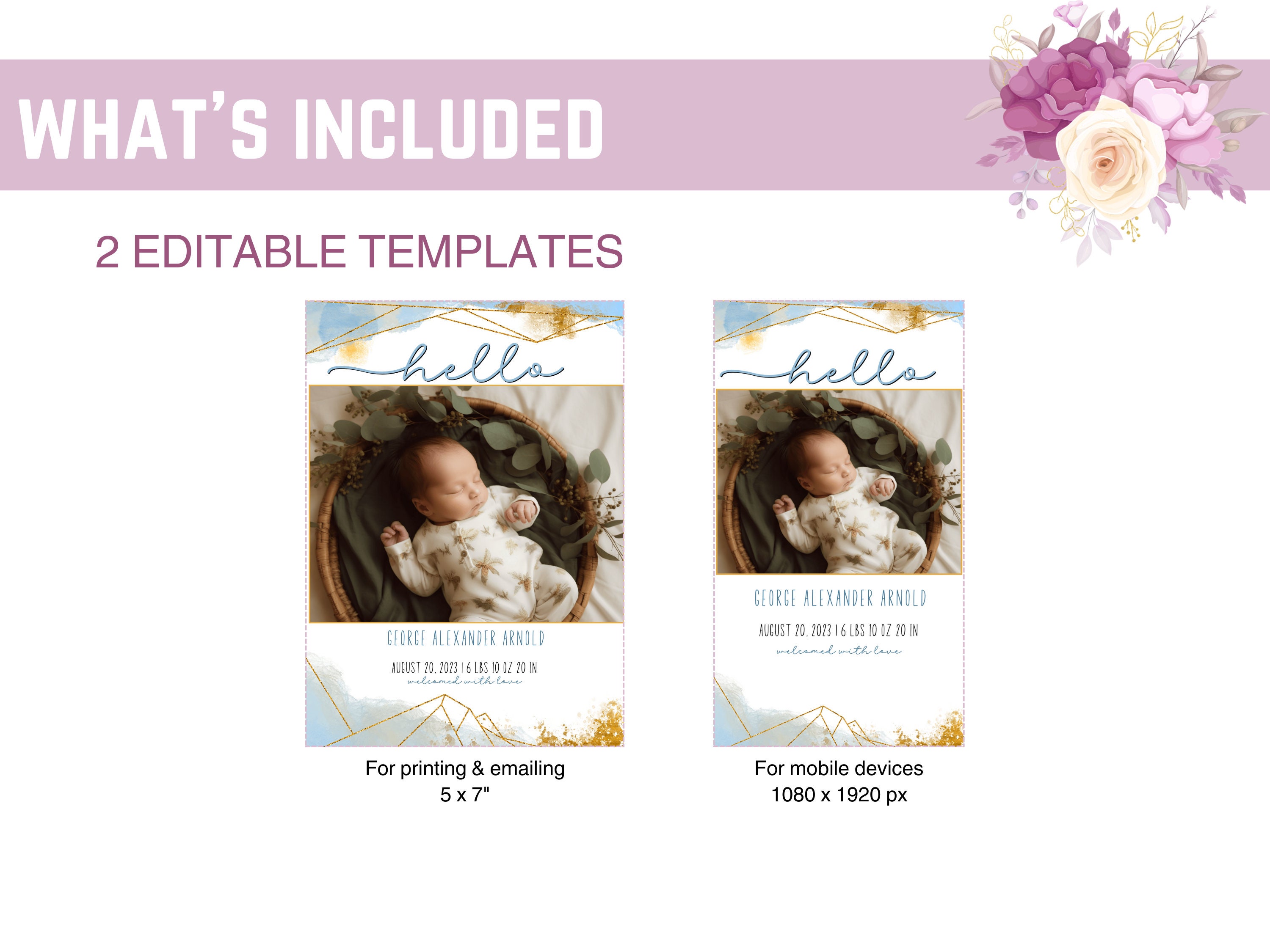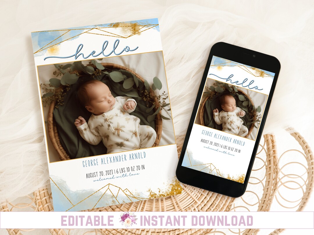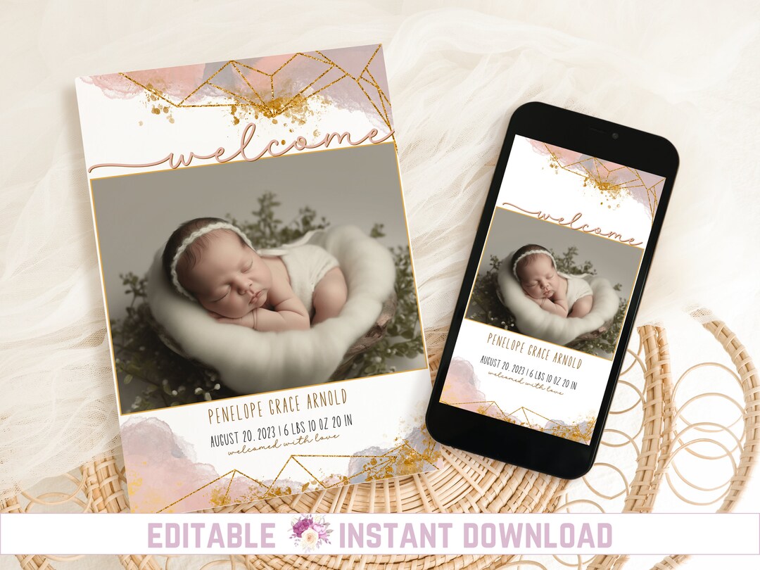 Editable Birth Announcement Digital Birth Announcement Bundle INSTANT