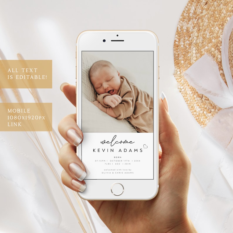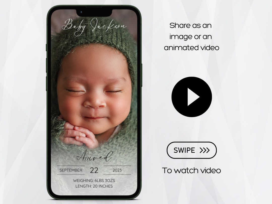 Mobile Birth Announcement Template Photo Baby Announcement Digital