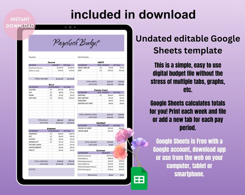 2024 DIGITAL BUDGET TEMPLATE GOOGLE SHEETS BUDGET TEMPLATE BUDGET
