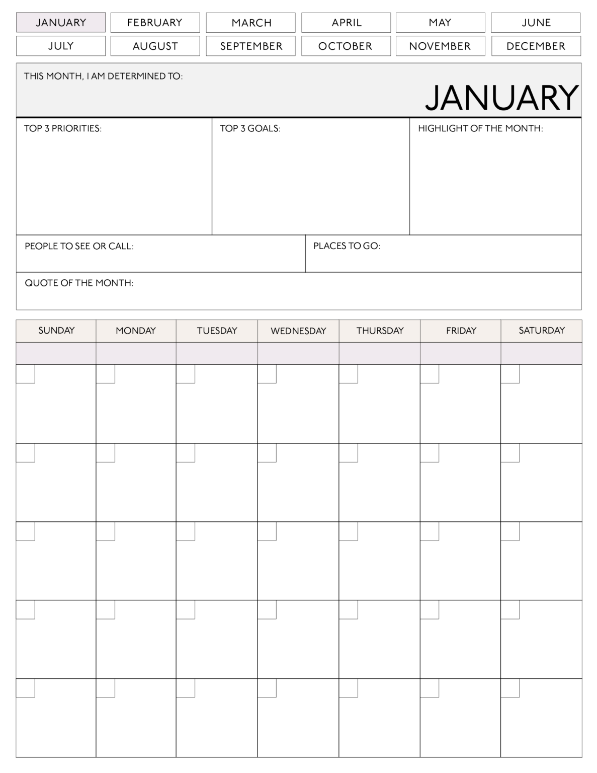 Digital Calendar Planner Printable Planner Monthly Planner Simple