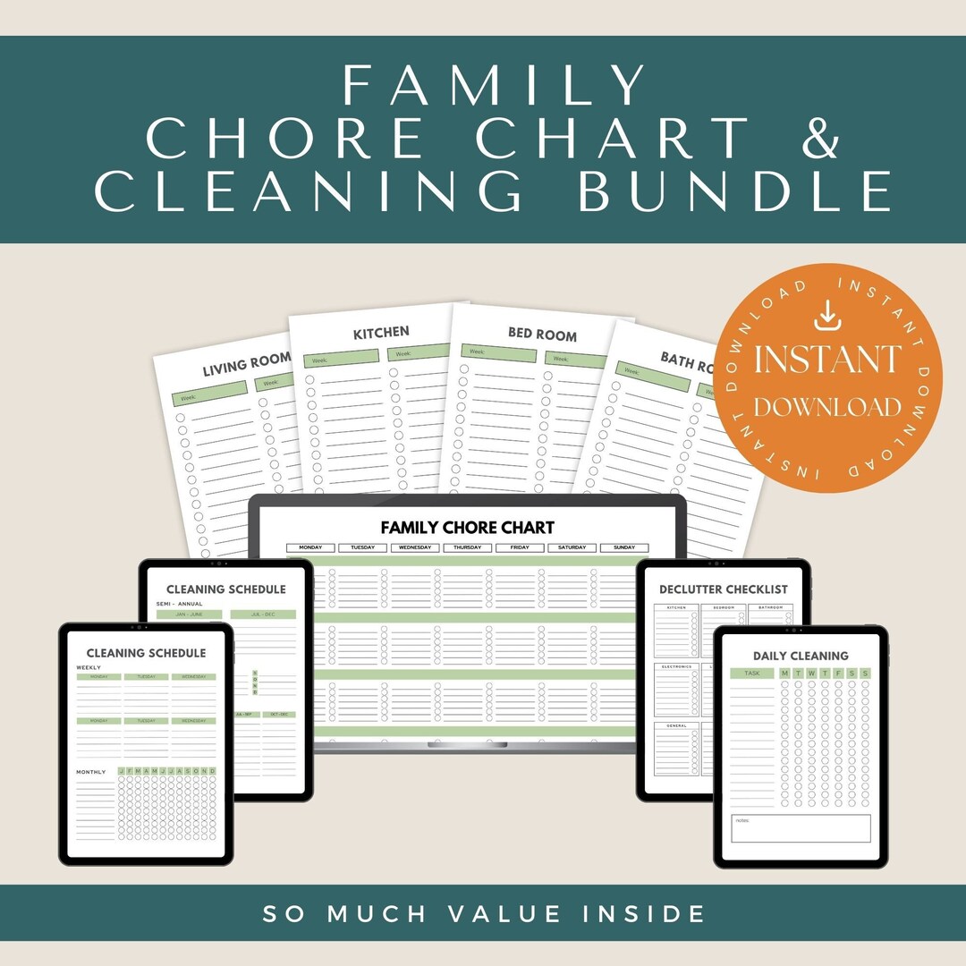 Family Digital Chore Chart Cleaning Schedule Editable Chore Chart