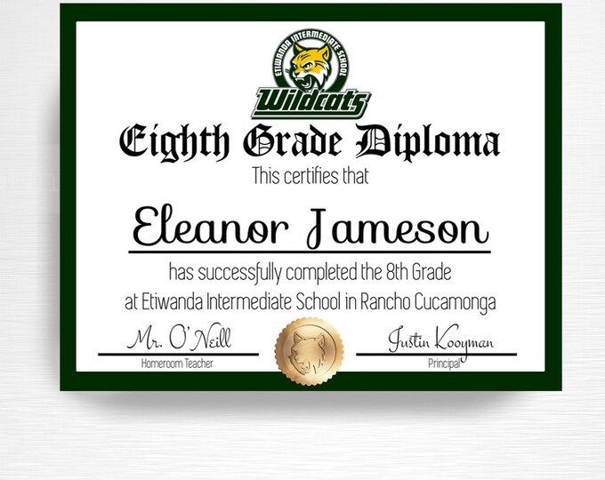 Printable 8th Grade Diploma Etsy