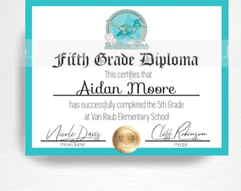 5th Grade Graduation Certificate Etsy