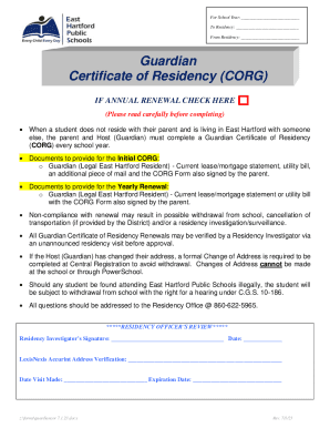 Fillable Online Guardian Certificate of Residency Annual Renewal Form