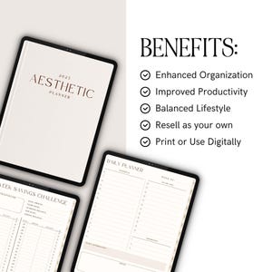 PLR Undated Digital Planner Hyperlinked Premium Design Aesthetic