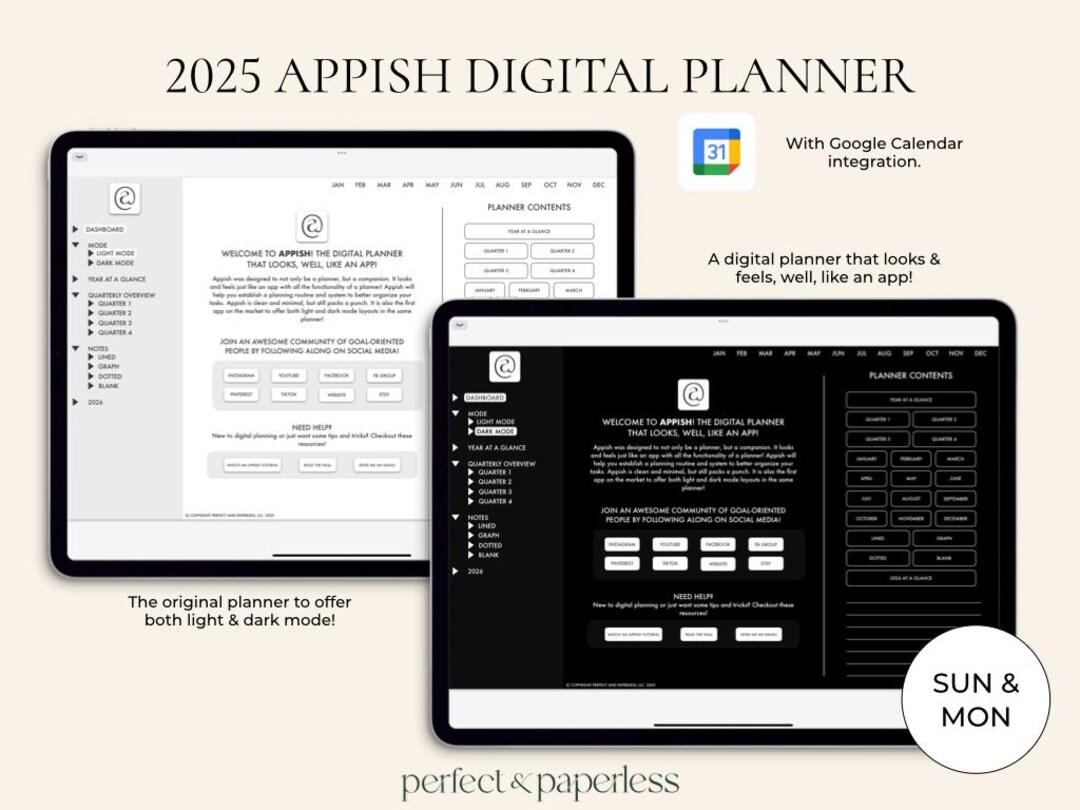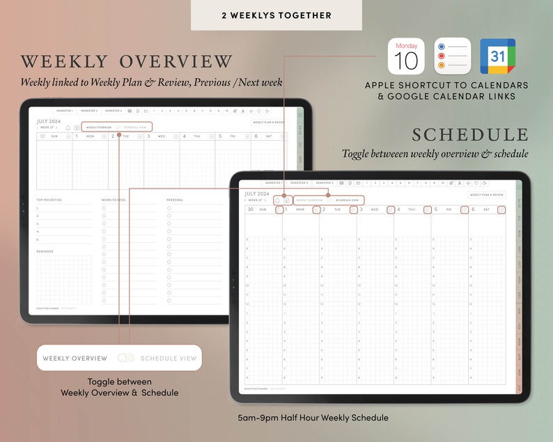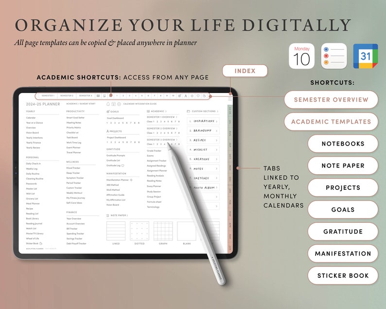 2024 2025 Undated Goodnotes Digital Planner Google Calendar Reminders