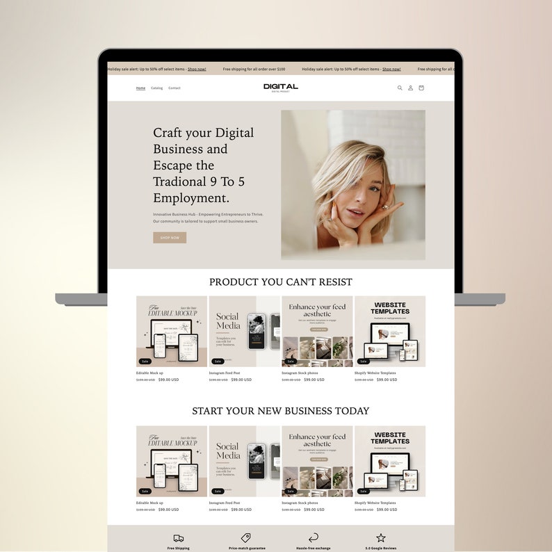 Beige Shopify Theme: Digital Product Website Template Etsy