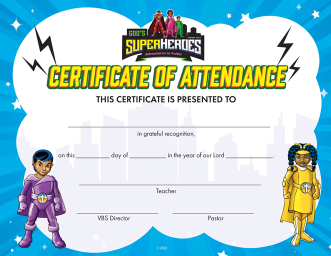 VBS Certificate of Attendance Sunday School Publishing Board