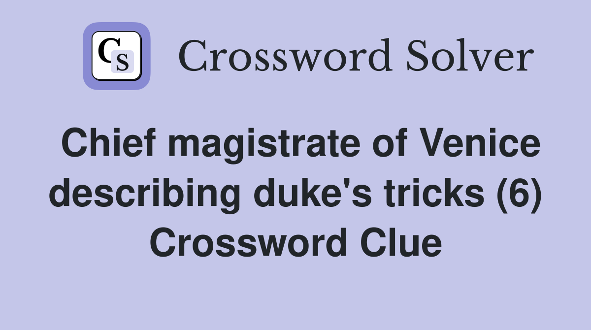 Chief magistrate of Venice describing duke #39 s tricks (6) Crossword