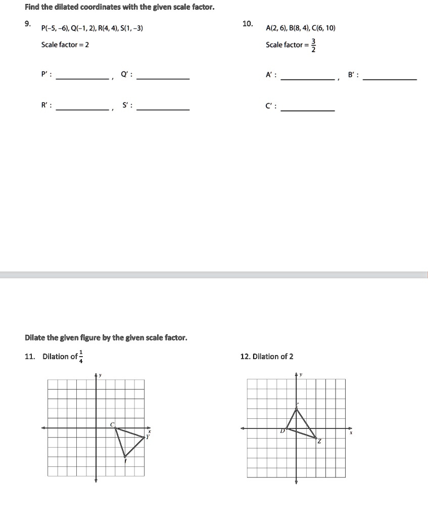 SOLVED: Find the dilated coordinates with the given scale factor: 10 P